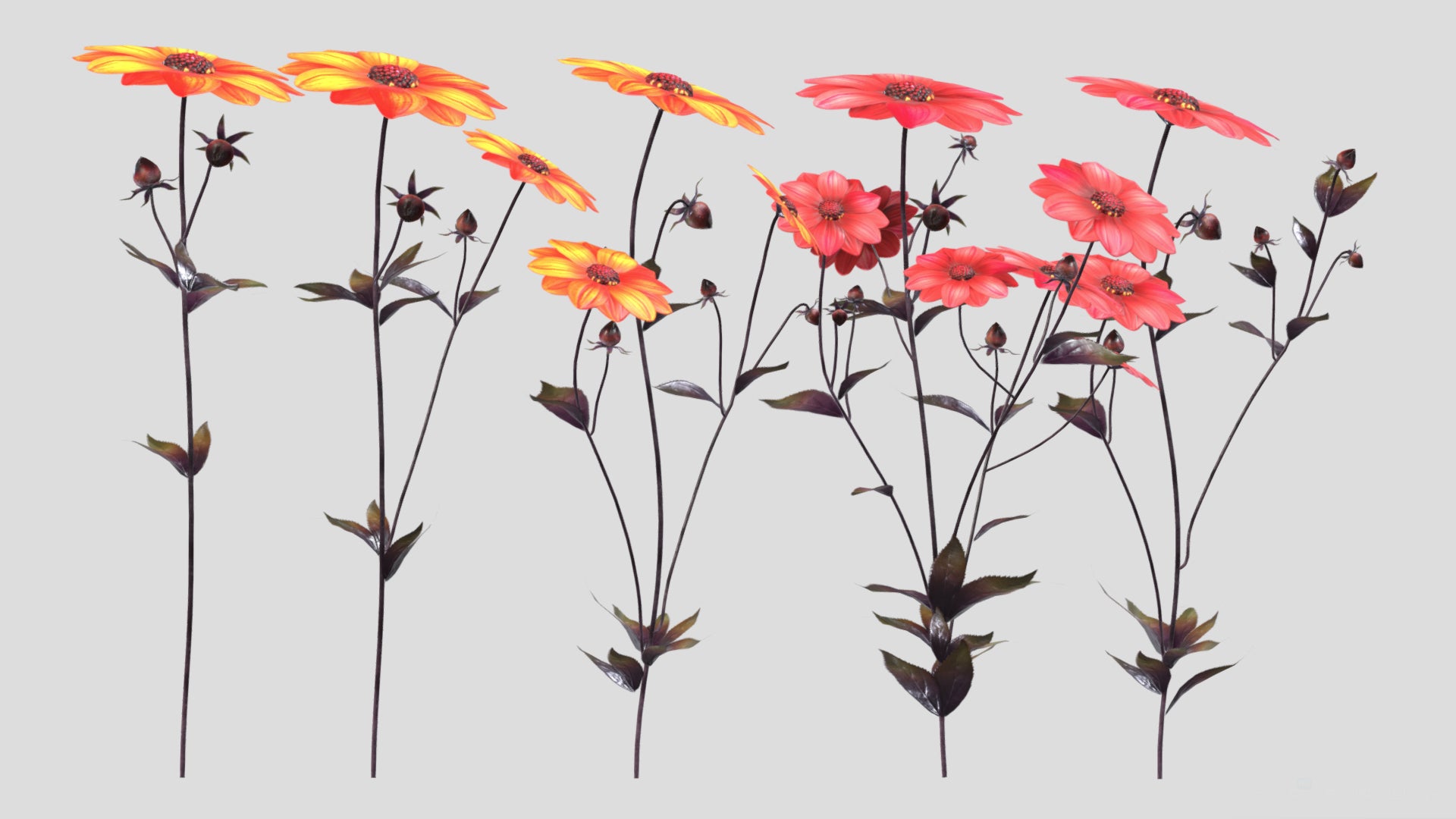 Dahlia Bishop Flower Low Poly